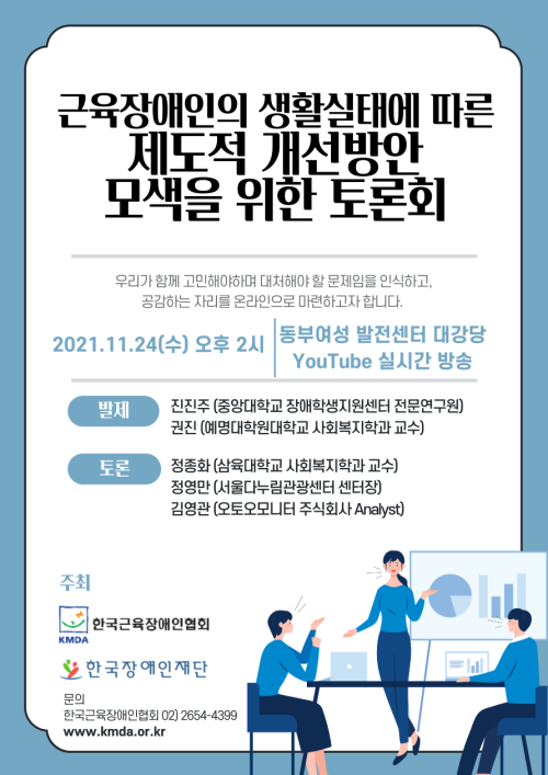 - 근육장애인의 생활실태에 따른 제도적 개선방안 모색을 위한 토론회(한국근육장애인협회, 한국장애인재단)
