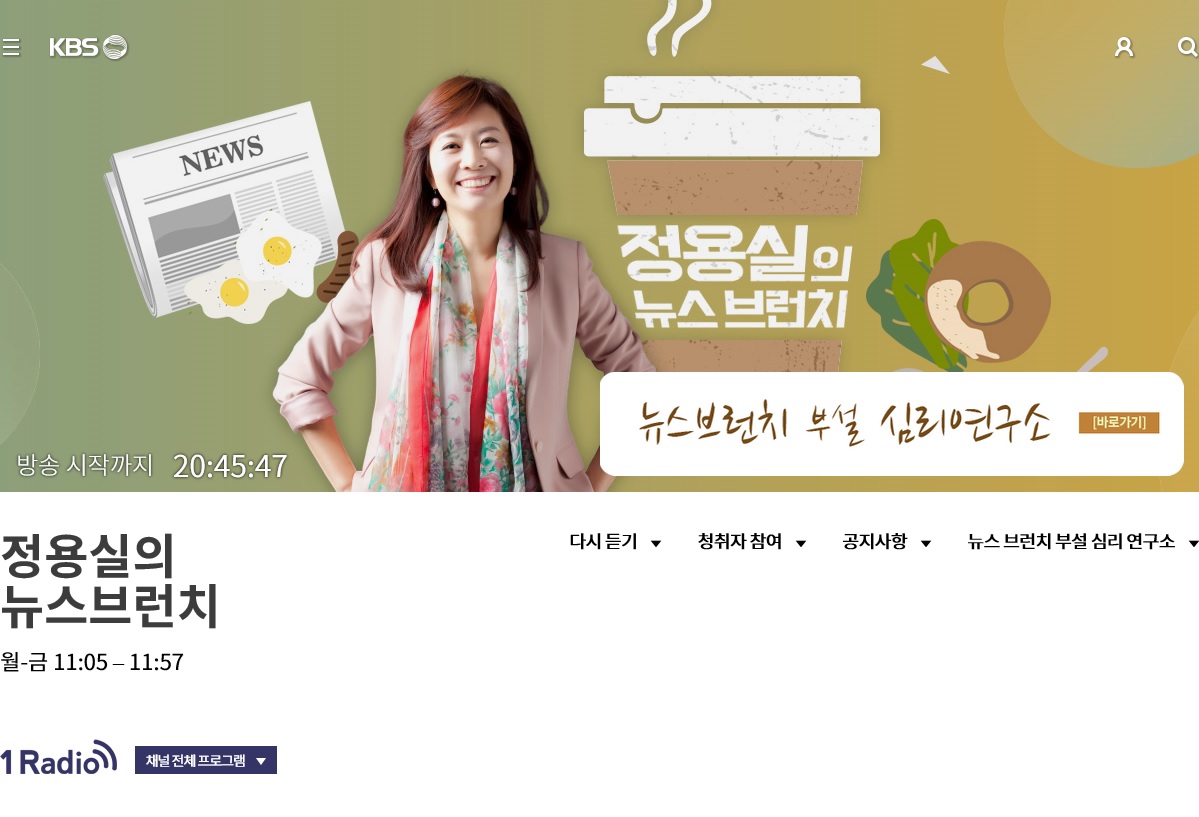 - 프로그램명: KBS1라디오 정용실의 뉴스브런치